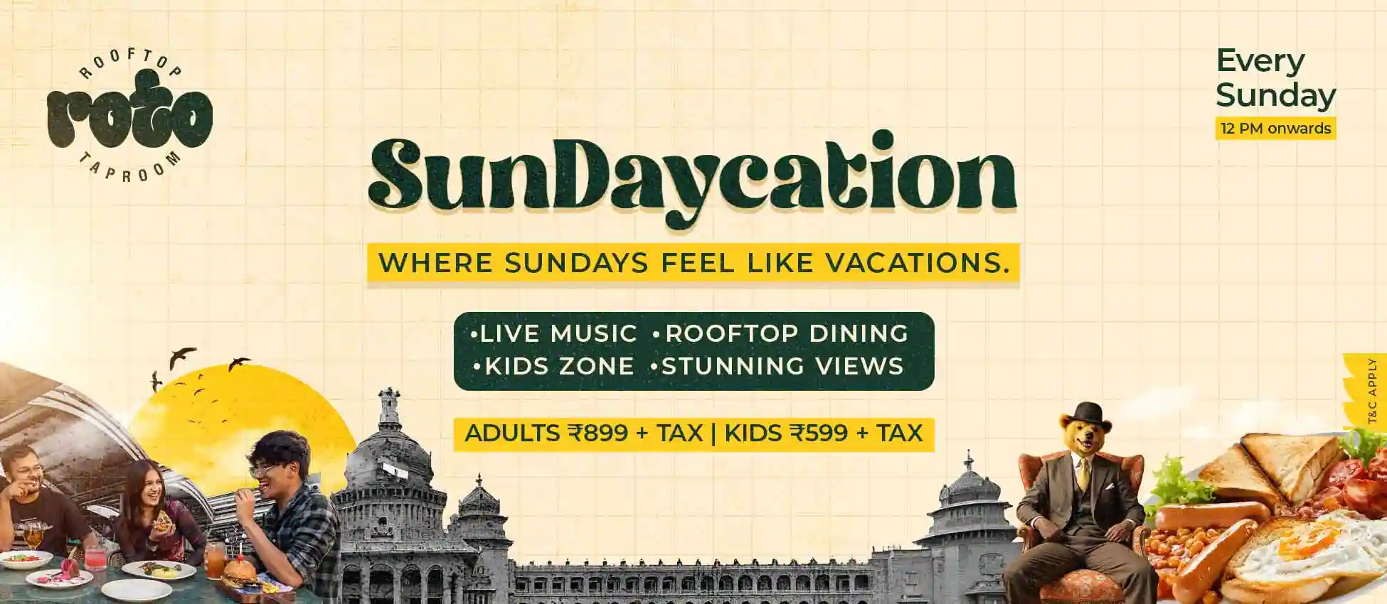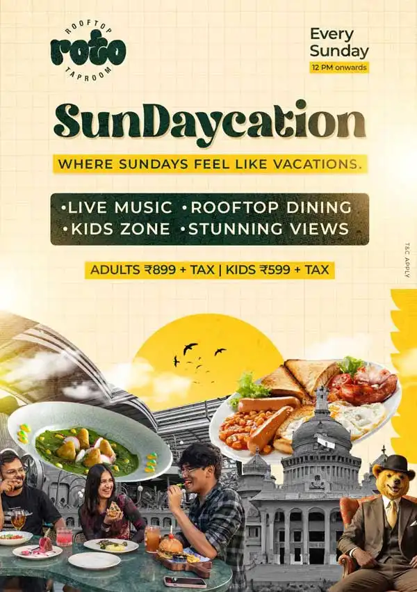 If your perfect Sunday includes great food, good vibes, and a view that makes you forget the city rush — welcome to SunDaycation at Roto Rooftop Taproom. Every Sunday from 12 PM onwards, we turn our rooftop into a vibrant weekend escape with music, laughter, and a menu made for indulgence.